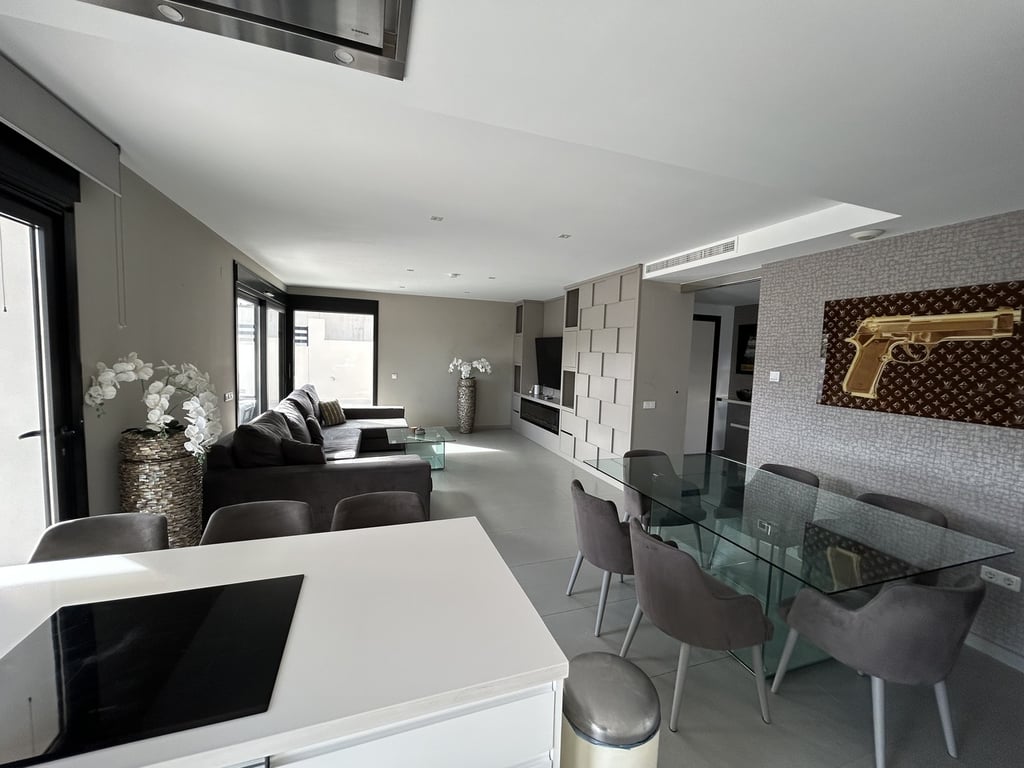 Discover an exceptional villa that blends contemporary elegance with relaxed Mediterranean charm in the highly sought-after area of Los Balcones, Torrevieja. Set on a private plot, this stunning 5-bedroom, 4-bathroom residence is offered fully furnished, allowing you to move in and start enjoying the lifestyle immediately.The villa welcomes you with generous, sun-filled interiors, high-quality finishes, and a seamless flow throughout. Stylish furnishings complement the modern design, while each bedroom offers comfort and privacy. The beautifully appointed bathrooms reflect refined taste and attention to detail. The heart of the home opens onto a private swimming pool, creating the perfect setting for entertaining, family gatherings, or tranquil afternoons under the Spanish sun.Outside, the landscaped terraces provide multiple areas to relax and dine al fresco, and the private garage ensures convenience and security. Every detail of this home has been carefully considered to deliver both elegance and functionality.Located just minutes from beaches, golf courses, shops, and restaurants, this villa offers the ideal balance of exclusivity and accessibility—perfect as a permanent residence, luxury holiday home, or high-end investment.Key Features:Fully furnished5 spacious bedrooms & 4 modern bathroomsPrivate swimming poolPrivate garageElegant, light-filled interiorsPrime location in Los Balcones, TorreviejaA truly gorgeous villa that captures the essence of luxury living on the Costa Blanca.