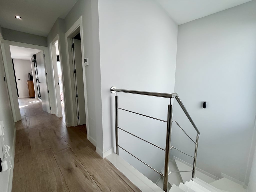 Experience modern coastal living at its finest in this exceptional resale new-build villa, perfectly positioned in the heart of Punta Prima. This home offers the ultimate blend of style, comfort, and convenience—just a short walk from the beach, restaurants, shops, and all local amenities.This high-spec, fully furnished residence spans multiple levels and has been designed with contemporary elegance and functionality in mind. The property features four bedrooms, with one conveniently located on the ground floor and three on the first floor, along with a fully finished basement offering an additional bedroom and bathroom—ideal for guests or extended family. Air conditioning is installed throughout with a ducted system to ensure year-round comfort, while the upgraded electrical panel and state-of-the-art security system provide safety and peace of mind.Every detail has been considered for modern living. A comprehensive water filtration system delivers clean, high-quality water throughout the home, while the solar swimming pool cover improves energy efficiency and helps maintain optimal pool temperatures. An automatic self-closing awning offers convenient shade and protection during sunny days.The rooftop terrace has been thoughtfully upgraded to create a private sanctuary, featuring premium artificial grass and a custom putting green—the perfect spot for relaxing, entertaining, or simply enjoying the coastal views.Set in a central and highly sought-after location, this villa allows you to embrace the best of coastal living with everything just steps away. Combining modern architecture, smart technology, and luxurious finishes, this move-in-ready home is ideal as a permanent residence, a holiday retreat, or a high-end investment opportunity in one of the Costa Blanca’s most desirable areas.