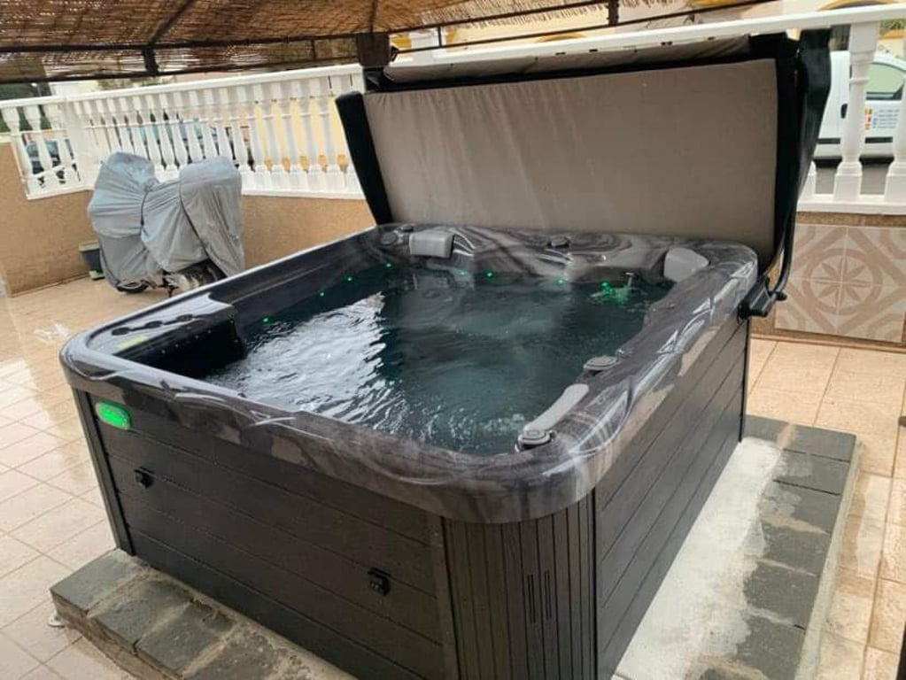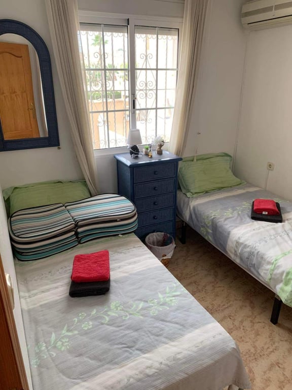 Zeer mooi huis gelegen in een rustige wijk van Las Filipinas, Orihuela Costa. Deze woning is gebouwd op twee niveaus en biedt een comfortabele en praktische indeling. Op de begane grond bevindt zich een volledig uitgeruste keuken die uitkomt op een gezellige woonkamer, samen met een eerste slaapkamer en een badkamer. Op de bovenverdieping zijn er nog twee slaapkamers, waarvan één met een eigen balkon, evenals een tweede badkamer. Vanuit deze verdieping is er toegang tot een terras dat leidt naar het ruime solarium, waar zich ook een handige berging bevindt. De buitenruimte is bijzonder aangenaam, met verschillende terrassen – waaronder een overdekt terras – een jacuzzi voor ontspanning, een privé parkeerplaats, extra opslagruimte en een goed onderhouden tuin. Het huis beschikt over airconditioning in de woonkamer en in alle slaapkamers, en elke slaapkamer is voorzien van ingebouwde kasten. De woning wordt volledig gemeubileerd verkocht en is in goede staat. Ze beschikt bovendien over een toeristische vergunning, wat het interessant maakt als investering. Binnen het wooncomplex is er een mooi gemeenschappelijk zwembad met een groene gemeenschappelijke tuin waar je volop kunt genieten van het Spaanse klimaat. Dankzij de ligging op loopafstand van allerlei voorzieningen, dichtbij meerdere golfbanen en op slechts 6 kilometer van de prachtige stranden van de Costa Blanca, biedt dit huis het beste van ontspanning en bereikbaarheid. De luchthaven van Alicante ligt op 55 kilometer afstand, winkels en restaurants op ongeveer 1 kilometer, en de dichtstbijzijnde golfbaan op slechts 2 kilometer. Met een bebouwde oppervlakte van 90 vierkante meter, een nuttige woonoppervlakte van 80 vierkante meter en een perceel van 144 vierkante meter biedt deze woning ruimte, comfort en een uitstekende ligging, compleet met balkon, veranda, solarium, dakterras, dubbele beglazing en alle voorzieningen voor permanent verblijf of vakantiegebruik.