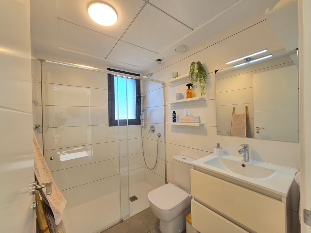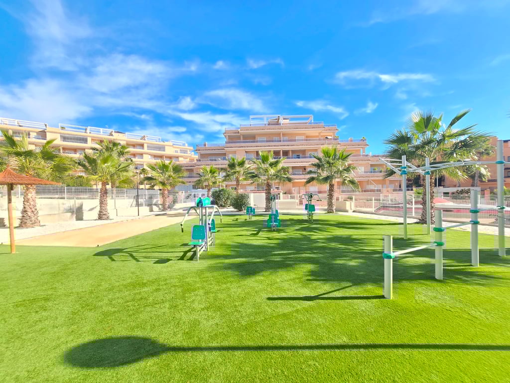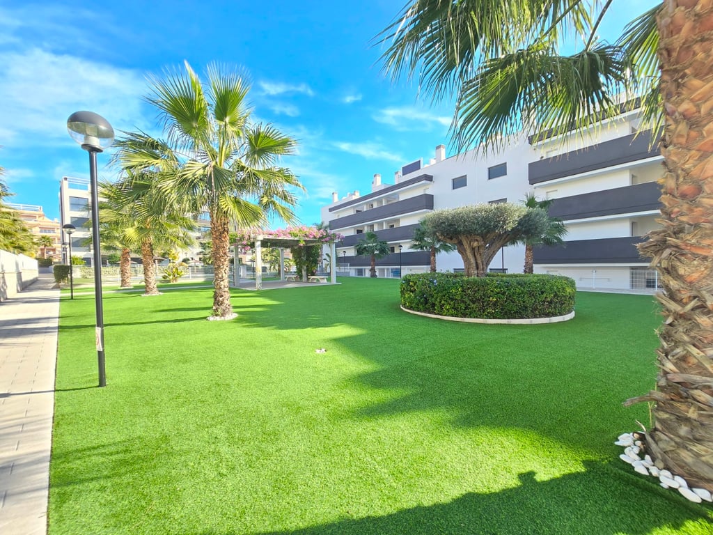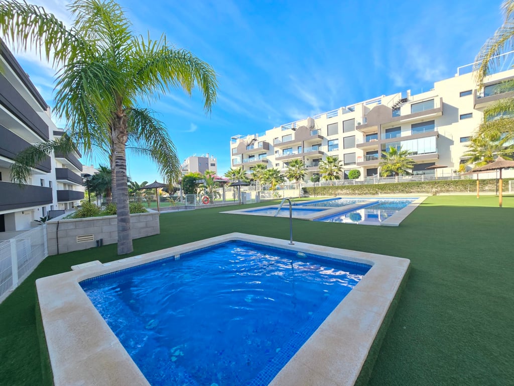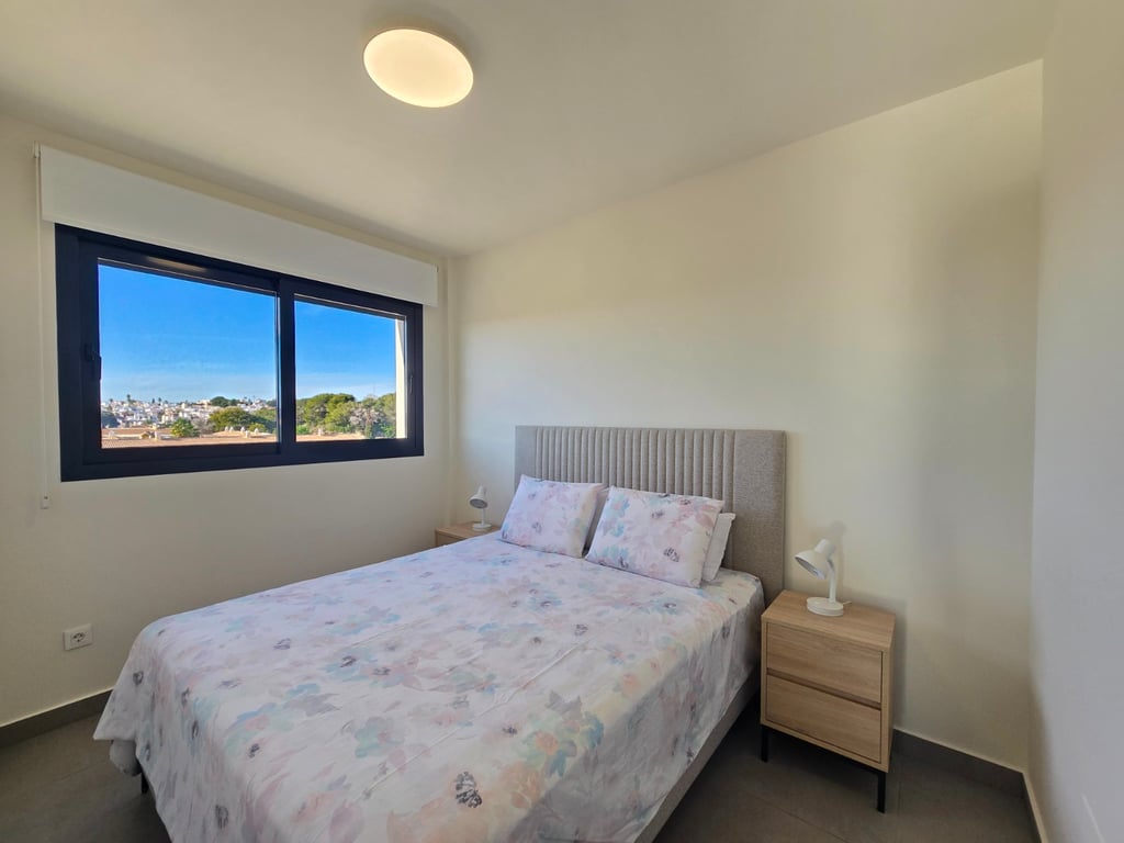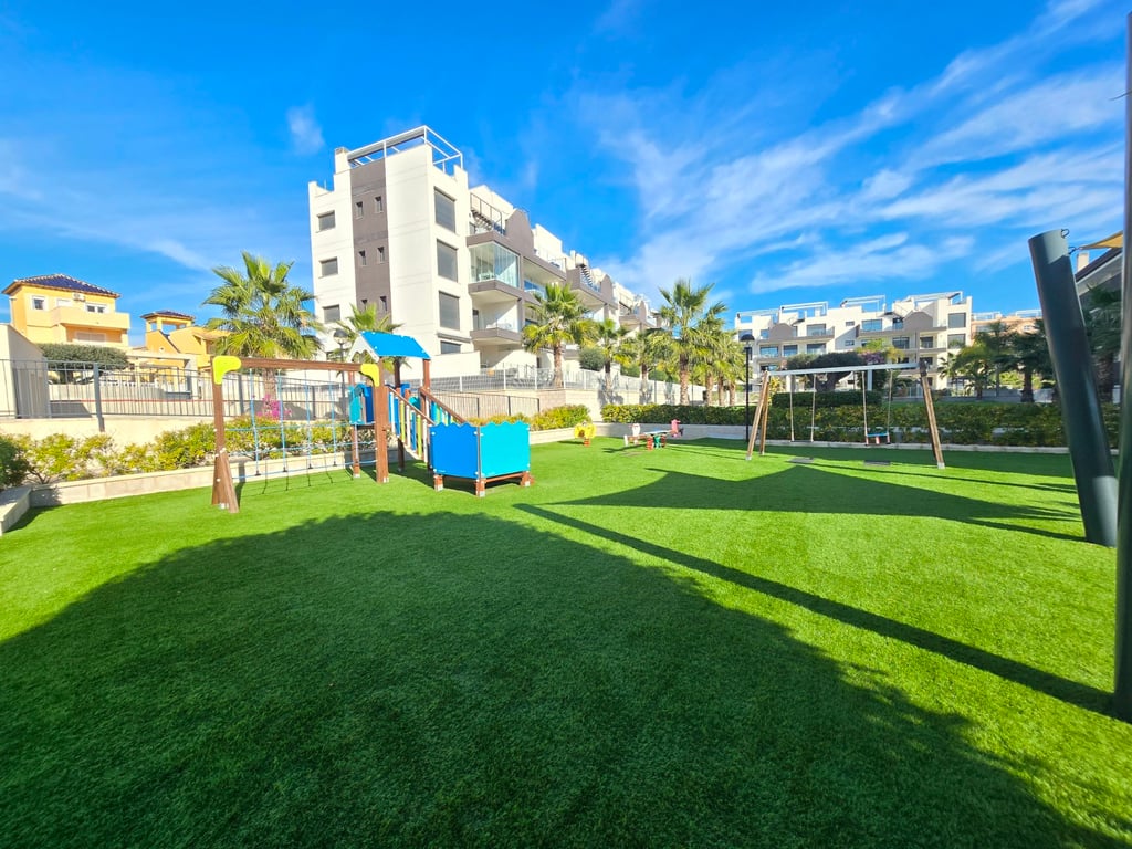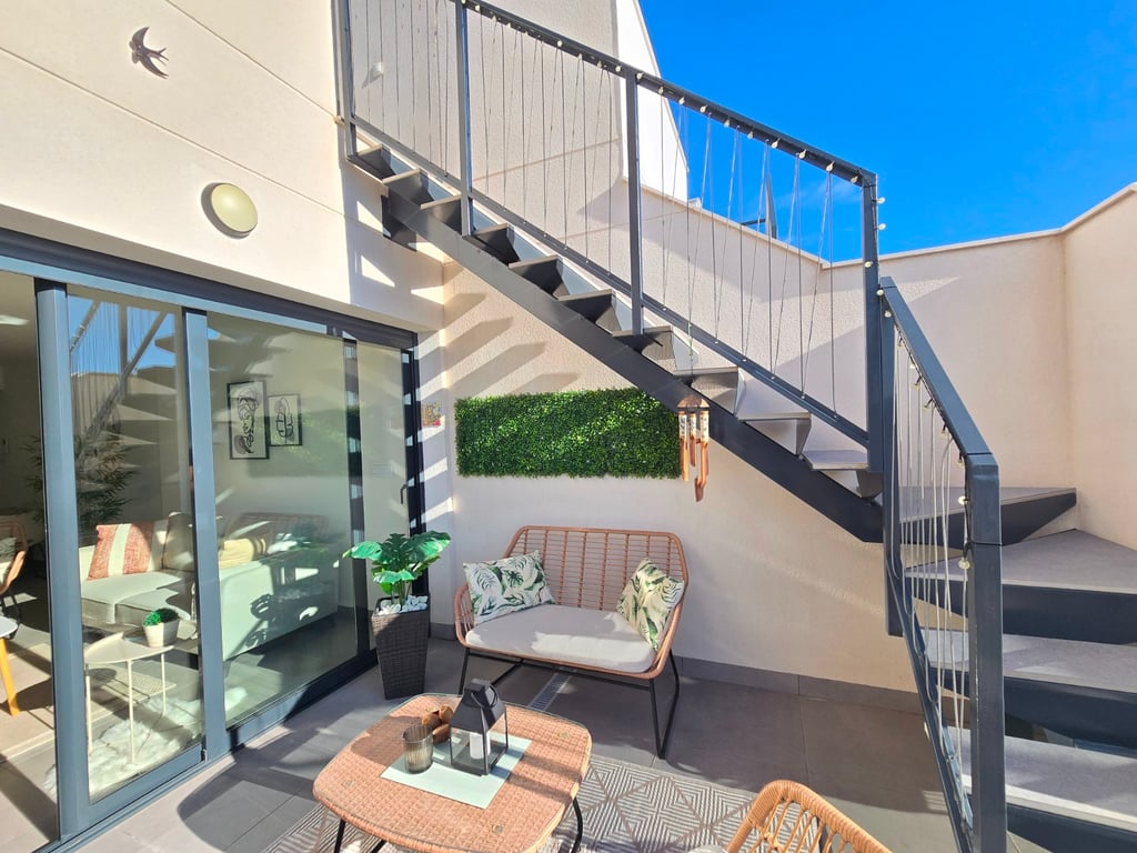 Ontdek dit uitzonderlijke zuidgerichte penthouse met adembenemend zee- en bergzicht, gelegen in een jonge en perfect onderhouden urbanisatie nabij de Golf van Villamartin. Het absolute pronkstuk is het ruime solarium, uitgerust met een volledig ingerichte buitenkeuken, een eet- en loungehoek en zonneterrassen waar je de hele dag door kunt genieten van licht, rust en panoramische vergezichten. Binnen verwelkomt een lichte en ruime leefruimte met open keuken je in een moderne, uitnodigende sfeer. Het penthouse beschikt over twee slaapkamers en twee badkamers, waarvan één en-suite, ontworpen met hoogwaardige materialen en een praktische indeling. Extra comfort vind je in de ondergrondse parkeerplaats (met pre installatie voor elektrische wagen) en twee afzonderlijke bergingen, ideaal voor extra opslag. De urbanisatie zelf biedt een waaier aan faciliteiten: twee zwembaden, een jacuzzi, een buiten gym, een petanquebaan, speeltuin voor de aller kleinste en prachtig aangelegde gemeenschappelijke zones. Alles ligt bovendien op wandelafstand van bars, restaurants en andere voorzieningen, waardoor ontspanning en gemak steeds binnen handbereik zijn. Ter extra’s heeft de woning zonneluifels, wind schermen, water ontkalker + OSMOSE en wordt deze volledig gemeubeld verkocht! Dit penthouse combineert luxueus wonen, comfort en topligging aan de Costa Blanca — perfect als permanente woonst, vakantieverblijf of investering. Twijfel niet een boek snel een bezichtiging! Suma: 249 euro/jaar. Gemeenschapskosten: 920 euro/jaar.