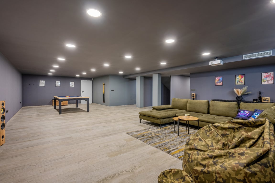 Ontdek deze prachtige moderne villa met 4 slaapkamers en 3,5 badkamers, perfect gelegen tussen Serena Golf en de glinsterende kust van de Mar Menor. Deze volledig gemeubileerde woning combineert stijl, comfort en functionaliteit en biedt de ideale balans tussen luxe wonen en rust aan de kust. Met 192 m² bruikbare ruimte beschikt de villa over een lichte en luchtige open woonkamer die naadloos aansluit op het buitenterras en het zwembad. De zuidoostelijke ligging zorgt voor natuurlijk licht gedurende de hele dag, wat de elegante moderne afwerking en smaakvolle inrichting benadrukt. Het solarium op de bovenste verdieping (83 m²) biedt een spectaculaire ruimte om te ontspannen of gasten te ontvangen, met een panoramisch uitzicht op de golfbaan en het omliggende landschap. De enorme kelder is ontworpen voor ontspanning en gemak, met een bioscoopzaal, een biljarttafel en een garage, samen met een extra slaapkamer die comfortabel plaats biedt aan maximaal vier personen — perfect voor gasten of familiebijeenkomsten. Buiten kunt u genieten van een privézwembad, een eethoek en een groene zone, ideaal om te genieten van de mediterrane zon of rustige avonden. Deze villa ligt in een rustige omgeving met prachtig uitzicht en biedt privacy, terwijl het slechts enkele minuten verwijderd is van golfbanen, stranden, restaurants en alle lokale voorzieningen. Belangrijkste kenmerken: 4 slaapkamers, 3,5 badkamers 192 m² bebouwde oppervlakte + 83 m² dakterras Volledig gemeubileerd, klaar om te betrekken Privézwembad en aangelegde buitenruimte Ruime kelder met bioscoop, pooltafel en garage Zuidoostelijke ligging voor optimaal zonlicht Rustige locatie tussen Serena Golf & Mar Menor Deze villa is de perfecte woning voor wie op zoek is naar een moderne mediterrane levensstijl met een vleugje luxe en ontspanning.