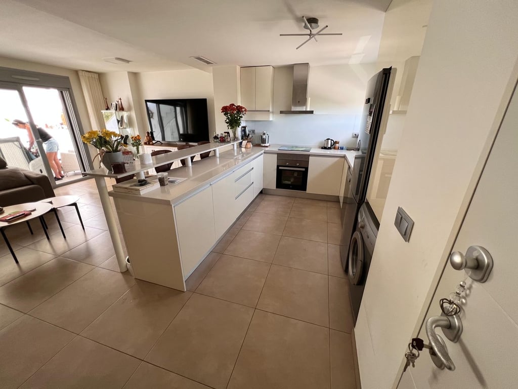 Dit lichte appartement op de eerste verdieping ligt in een van de meest gewilde gebieden van de Costa Blanca en biedt comfort, stijl en een geweldige locatie in het wooncomplex Vistabella Golf - Entre Naranjos. De woning bestaat uit twee slaapkamers met inbouwkasten, twee badkamers en een moderne, volledig uitgeruste open keuken. De woon-/eetkamer komt uit op een aangenaam en ruim privéterras waar u kunt genieten van het mediterrane klimaat en het prachtige uitzicht op de gemeenschappelijke tuinen en het zwembad. De accommodatie beschikt tevens over een groot privé-solarium, waar u heerlijk kunt zonnebaden, dineren en ontspannen. Er is een jacuzzi op zonne-energie op het solarium om aan het einde van de dag te ontspannen. De woning is voorzien van airconditioning, anti-inbraakdeur, intercom en wordt gedeeltelijk gemeubileerd verkocht. De woning bevindt zich in een goed onderhouden complex met toegang tot een gemeenschappelijk zwembad en groene zones. Privéparkeerplaats inbegrepen in de prijs. Slechts 5 minuten lopen naar bars, restaurants en supermarkten 5 minuten van Vistabella Golf Course 20 minuten rijden van de stranden 40 minuten van de luchthaven van Alicante Ideaal als vakantiehuis, investering of permanente bewoning.