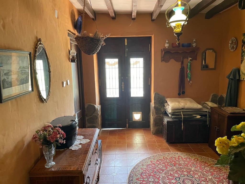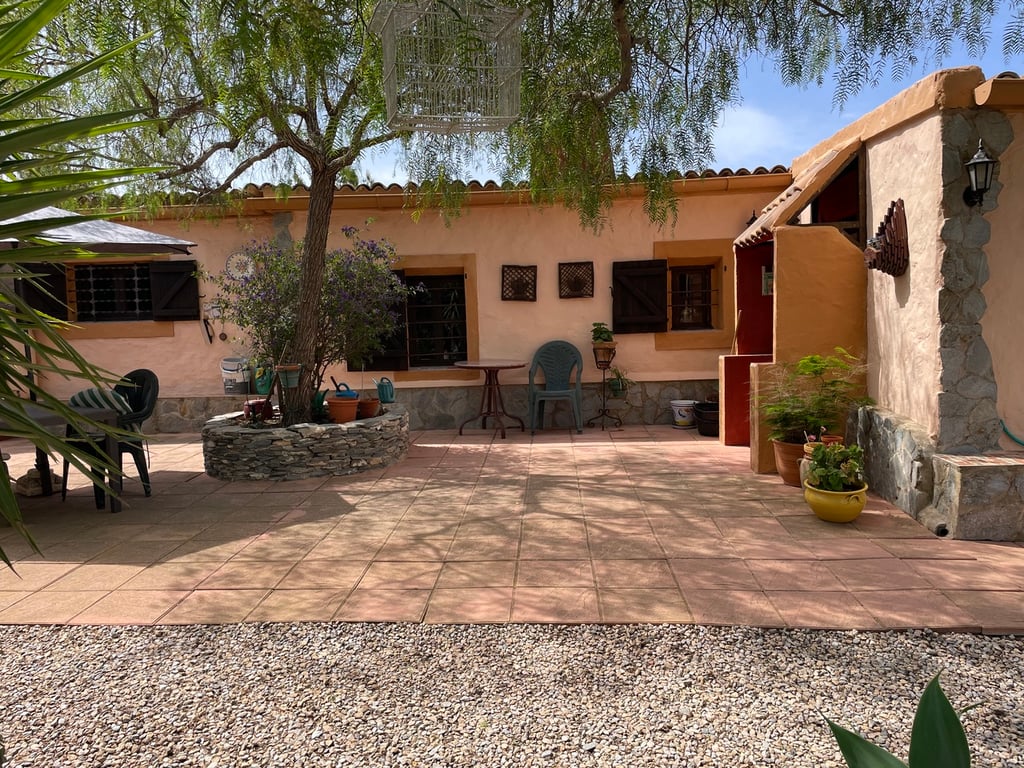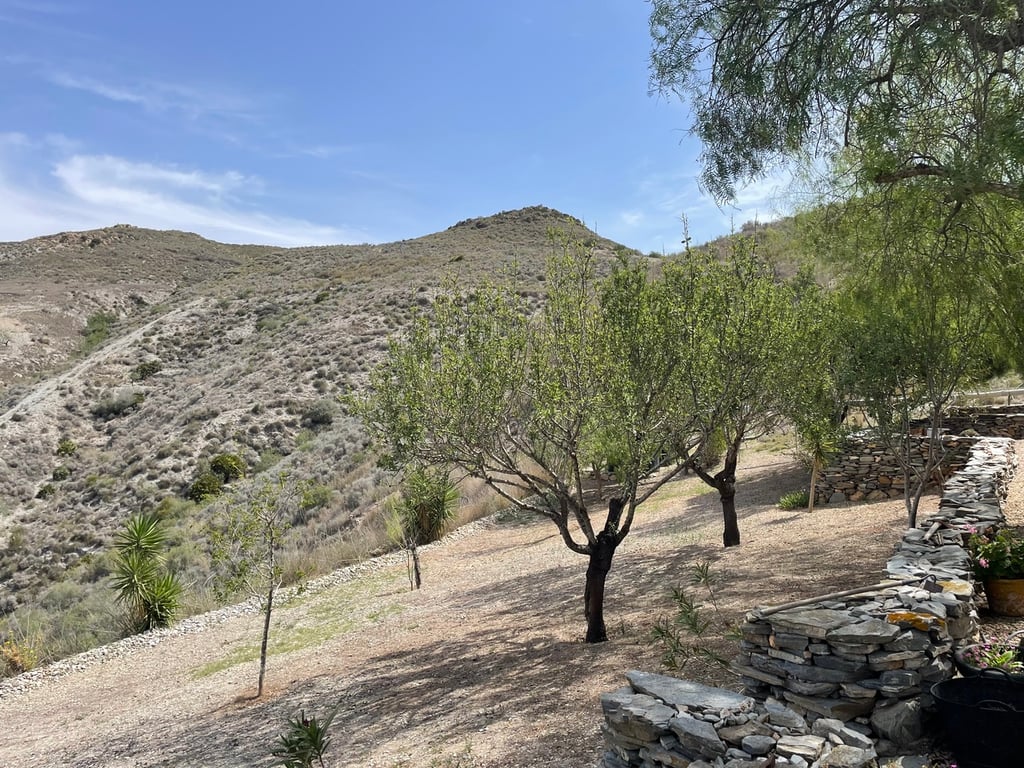 *** VIDEO AVAILABLE***A unique and charming property situated in the mountains overlooking Puerto de Mazarron and Isla Plana with panoramic views to the mountains and sea. If off-grid living is your thing, then this property is a must see! Set in over 40,000 sqm of land, nature is all around you. You have 4 bedrooms and 1 bathroom, 2 lounges, fireplace, log burner, garage and workshop plus those wonderful views.The property is located of the mountain road heading from Puerto de Mazarron to Cartagena in Murcia. Once you leave the main road, you have a 11 minute drive on fairly rough terrain until you reach the property but once there, it’s well worth it. You have a gravelled parking area and garage to the side of the house. Once you enter the property into the vestibule, you have two double bedrooms with lovely original wooden beams, ceiling fans and free standing wardrobes. The first lounge has lovely wood windows with wooden shutters, wooden beams throughout the ceiling and a large open, stone fireplace. Off the lounge is the third bedroom which is currently used as a study.Through the lounge leads to the scullery, fully equipped kitchen and pantry. The kitchen has oak wood upper and lower units, tiled worktops, double sink, gas hob and comes complete with all white goods. There are plenty other work surfaces in the scullery next to the kitchen. The second lounge again has a log burner set within a surround fireplace and lovely wooden beams giving the whole room a nice, warm cosy feel. The lounge is huge, with a dining area as well and fantastic views to the sea and surrounding mountains and countryside. The fourth bedroom has magnificent views to the sea and mountains. The bathroom has a shower unit, hand basin, cupboard space and W/C. It also houses the washing machine. The property has a build size of 213 sqm and is south facing.There are many different seating areas to enjoy the spectacular views. Some of the immediate garden is tiled or gravelled and there is a variety of trees, shrubs and plants all around the landscape. The garage and workshop, which are 70 sqm, sit next to each other and there is also a wood store. Next to this is where the solar settings and battery back ups are situated producing 3 kws for all your electrical needs. There are numerous water butts collecting all the water you need and a soak away for sewage waste. The property comes furnished and with all white goods. If you are looking for a hideaway with tranquillity, privacy and nature, this is definitely the place for you! The property has no mains water or electricity. Valdelentisco valley is the picturesque route from the Puerto de Mazarron up the mountain and onto Cartagena. Popular with cyclists and has also had car rally competitions held here. It is just a short drive down to the coast for the beaches, bars, restaurants and shopping of Puerto de Mazarron and Isla Plana.