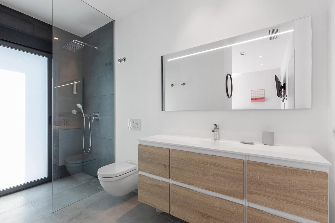 Deze spectaculaire moderne villa, geprijsd op €1.700.000, bevindt zich in het exclusieve Las Colinas Golf & Country Club — een van de meest prestigieuze residentiële resorts aan de Costa Blanca. De woning biedt een perfecte balans tussen design, comfort en luxe. Ze beschikt over vier ruime tweepersoonsslaapkamers, elk met een eigen en-suite badkamer, wat maximale privacy en comfort garandeert voor familie en gasten. De elegante open leefruimte sluit naadloos aan op de designkeuken — een echte eyecatcher die hoogwaardige apparatuur combineert met uitzonderlijke stijl. Grote schuiframen leiden rechtstreeks naar het privézwembad en de aangelegde tuin, ideaal om te ontspannen of gasten te ontvangen onder de mediterrane zon. Twee slaapkamers bevinden zich op de begane grond, terwijl de bovenverdieping twee extra suites biedt met prachtig open uitzicht. Elk detail van deze woning is zorgvuldig ontworpen om de ultieme lifestyle in een luxe golfresort te bieden.