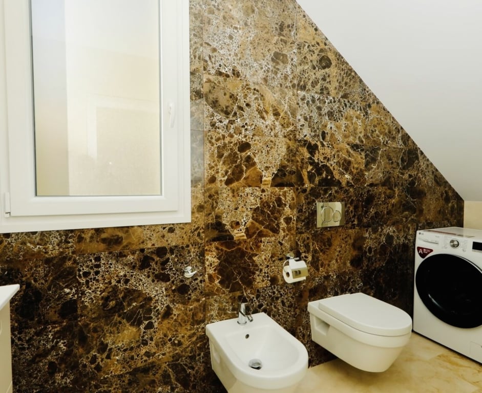 This level also features a large double bedroom with ensuite bathroom, a double bedroom and a separate bathroom.An internal staircase leads you to the underbuild, featuring and a separate laundry room.Situated on the first floor is the sumptuous master bedroom with walk-in wardrobe and ensuite, a second large double bedroom with ensuite, and a third guest double bedroom with ensuite. Each bedroom has direct access to the large wrap-around sun terrace.Internal stairs lead to the large roof terrace, perfect for relaxing day or night with views of the sea.The very attractive, low-maintenance garden benefits from the fabulous heated pool, a large terrace area, an outdoor kitchen with a seating area with a retractable awning, a storage room, and a private garage.Other features include Daikin brand air heater with fun-coil, with underfloor heating in all floors.