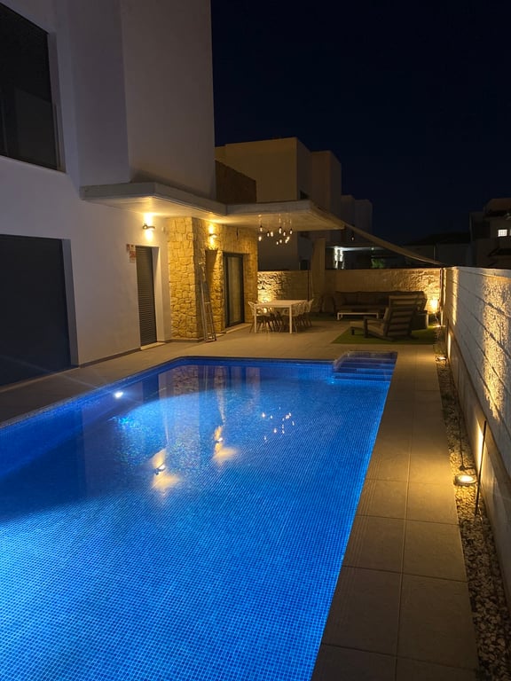 Exclusief Te Koop: Moderne Zuidwest-Gerichte Villa in Ciudad QuesadaLocatieGelegen naast citroenboomgaarden, bevindt deze prachtige moderne villa zich op een ideale locatie, dicht bij alle voorzieningen van Ciudad Quesada en slechts 6 km van de zee en 2 km van golfbaan La Marquesa. Geniet van rust en natuur, terwijl winkels, restaurants en faciliteiten zich op slechts enkele minuten afstand bevinden.Belangrijkste KenmerkenPrachtig uitzicht vanaf het dakterras naar zee, de zoutmeren en de omgevingElektrische rolluiken in het hele huis voor extra comfort en veiligheidRuim verwarmd privé zwembadOnderhoudsvriendelijke tuin en terrassen rondom de villaPrivéparkeerplaatsIndelingBegane GrondLichte, ruime woonkamer met veel natuurlijk licht en directe toegang tot het terras de tuin en het zwembadOpen, volledig uitgeruste keuken met hoogwaardige Bosch-apparatuur1 slaapkamer op de begane grond1 complete badkamerWas- en opbergruimte Eerste Verdieping2 ruime slaapkamers, waarvan één met toegang tot een groot zuidgericht terras1 badkamerVanaf het terras leidt een trap naar het ruime dakterras — ideaal om te ontspannen met ligbedden en te genieten van het panoramisch uitzicht op zee en de zoutmerenExtra’sBerging en wasruimte met beveiligde achterdeurVerwarmd zwembad, perfect voor gebruik het hele jaar doorElektrische rolluiken in het hele huisPrivé parkeerplaatsRuim dakterras BeschrijvingDeze moderne en stijlvolle villa biedt een perfecte combinatie van luxe, comfort en functionaliteit. De open woonkamer met keuken en Bosch-apparatuur zorgt voor een warme en gezellige sfeer. Met drie slaapkamers en twee badkamers is de indeling ideaal voor gezinnen of wie op zoek is naar comfort en elegantie.Geniet van de Mediterrane levensstijl met zonnige terrassen, een verwarmd privézwembad en een rustige omgeving — allemaal op korte afstand van delevendige voorzieningen van Ciudad Quesada, de prachtige stranden van Guardamar del Segura en golfbaan La Marquesa ContactVoor meer informatie of om een bezichtiging te regelen, neem contact op met ons verkoopteam.