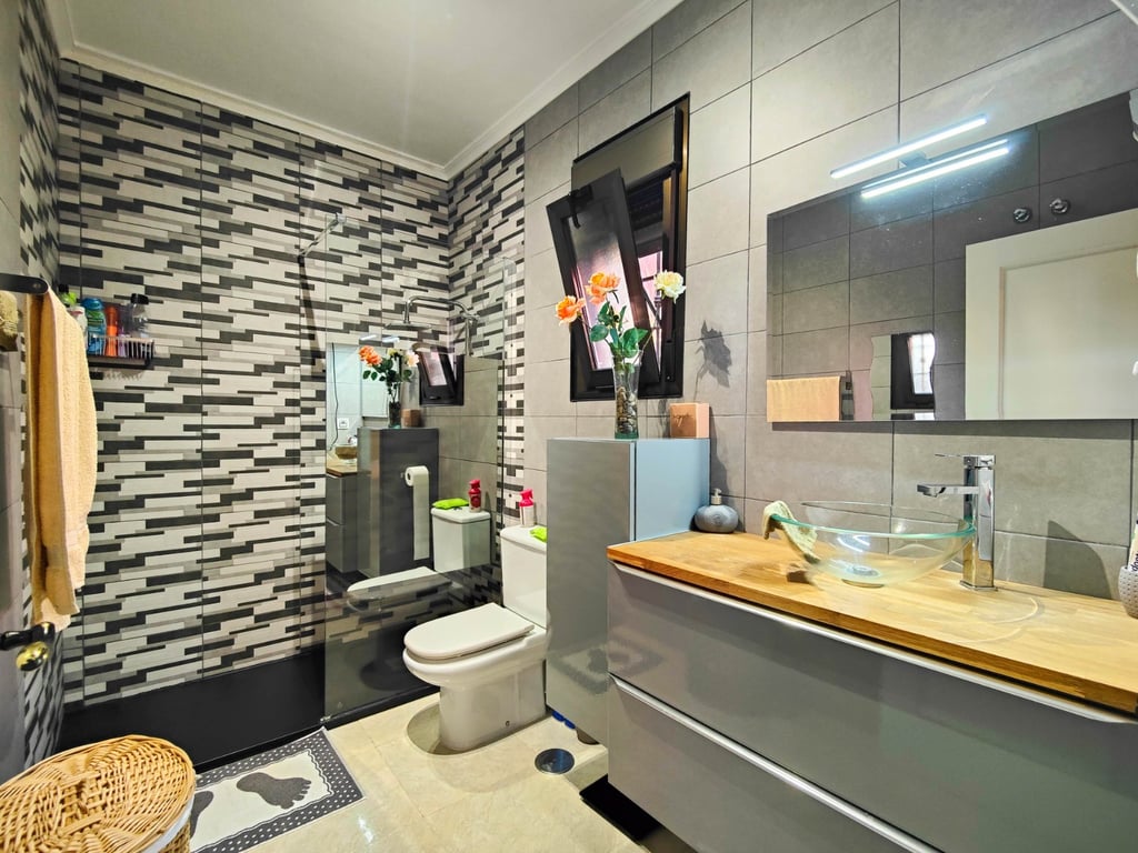 Vrijstaande zuidgerichte villa met privé zwembad te koop in het populaire wooncomplex Villas María III, gelegen in El Raso – Guardamar del Segura.De woning staat op een perceel van 300 m² en heeft een bebouwde oppervlakte van circa 117 m², verdeeld over twee verdiepingen. De villa beschikt over 3 slaapkamers en 3 volledige badkamers, waarvan één recent volledig gerenoveerd. De hoofdslaapkamer, gelegen op de begane grond, heeft een en-suite badkamer voor extra comfort.Op de begane grond bevinden zich een entreehal, ruime woon-/eetkamer, keuken, een complete badkamer en een slaapkamer met en-suite badkamer.Op de bovenverdieping zijn er twee slaapkamers, een complete badkamer en een zuidgericht terras, bereikbaar vanuit de hal.Buiten vindt u een verwarmd privézwembad, buitendouche, overdekte veranda, en een berging aan de achterzijde van de woning. Dankzij de zuidelijke oriëntatie geniet de woning de hele dag van zonlicht. Daarnaast beschikt het complex over een gemeenschappelijk zwembad.De woning biedt parkeergelegenheid op het perceel, evenals een privé genummerde parkeerplaats direct voor de woning.De villa wordt verkocht gemeubileerd en inclusief elektrische apparaten, en is voorzien van airconditioning in alle ruimtes.Gelegen in een urbanisatie met bars, restaurants en supermarkten, en op slechts 10 minuten rijden van de stranden van Guardamar del Segura, is deze woning ideaal als permanente verblijfplaats of als vakantiewoning.