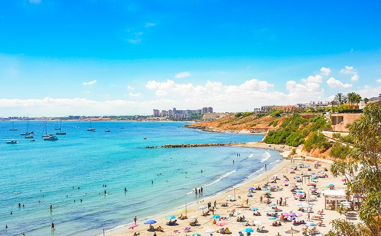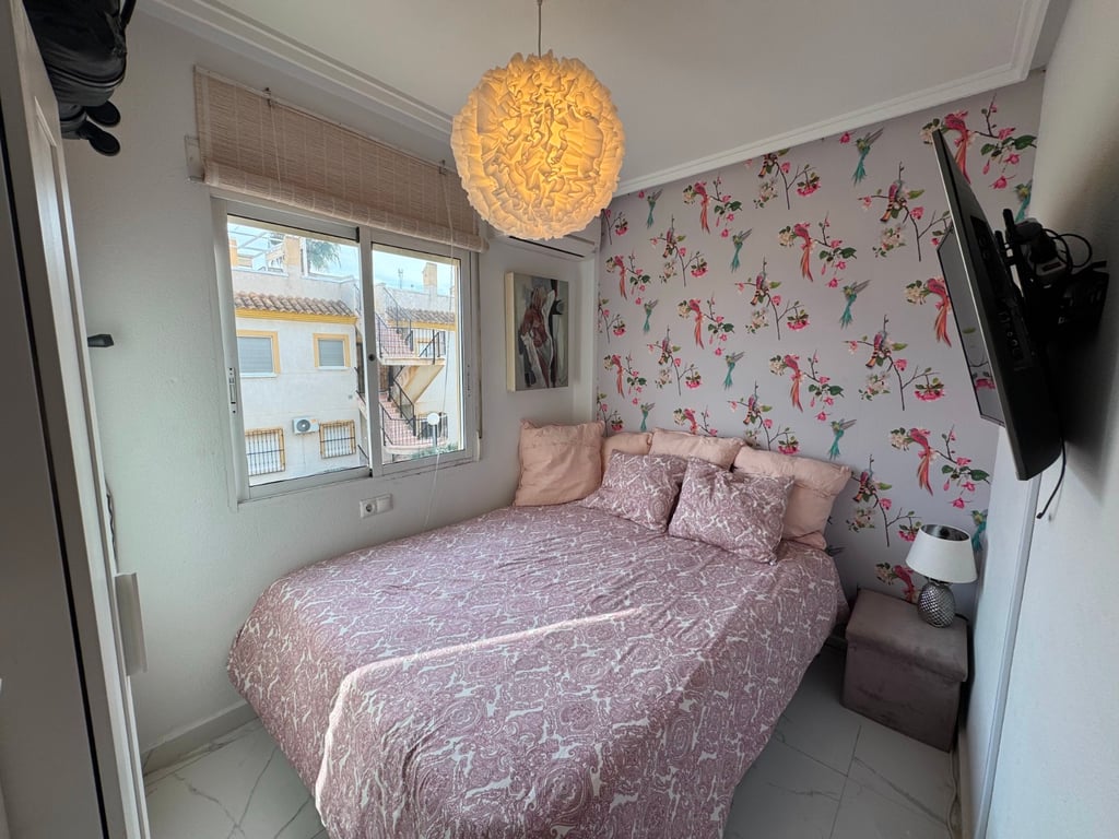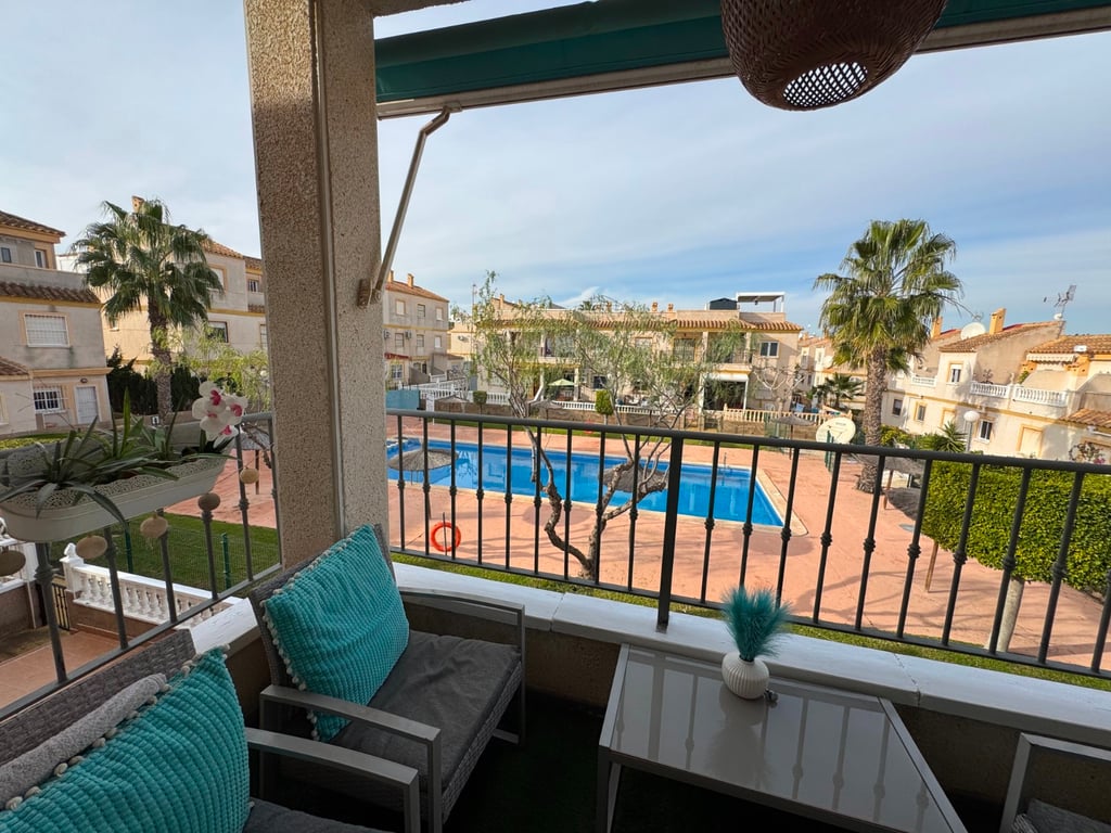Do not miss this opportunity to acquire a wonderful first-floor apartment in the highly sought-after area of St James Hill. Ideally positioned within a secure community accessed via communal electric gates, this beautifully presented two-bedroom, one-bathroom property offers both comfort and convenience in a prime location.Upon entering the apartment, you are welcomed into a bright and spacious open-plan living area, seamlessly connected to a fully fitted modern kitchen with integrated utilities. Large windows and patio doors flood the space with natural light and lead directly onto a private terrace overlooking the communal swimming pool, creating a bright and airy atmosphere ideal for relaxation and entertaining.The property benefits from hot and cold air conditioning throughout and is south-facing, ensuring year-round comfort and excellent sunlight. The apartment is fully furnished with high-quality furniture, fixtures, and fittings, complemented by elegant white porcelain flooring throughout.The smaller bedroom is generously sized and currently accommodates a king-size bed, while also being well-suited to a standard double. It features a large window allowing ample natural light. The stylish bathroom includes a walk-in shower and a modern vanity unit. The larger bedroom includes fitted wardrobes is also south-facing, and offers views over the communal pool area, and .A standout feature of this property is the private rooftop solarium, fully equipped with a bar and sunbathing area—perfect for enjoying beautiful Mediterranean summer evenings.Additional benefits include a designated private parking space. This apartment is ideal as a permanent residence, a holiday home, or a lock-up-and-leave investment with excellent rental potential.The location is exceptional, with La Fuente Commercial Centre within walking distance, offering a wide range of bars, restaurants, pharmacies, and supermarkets. Three renowned golf courses are also located nearby.A truly beautiful apartment that must be seen to be fully appreciated.