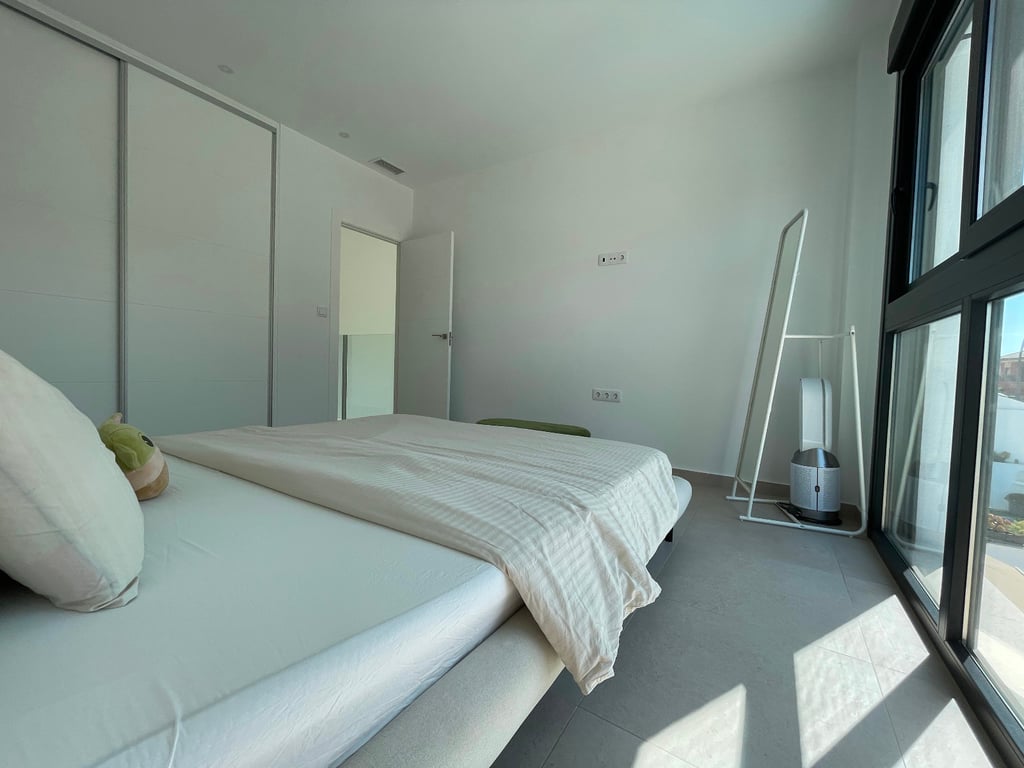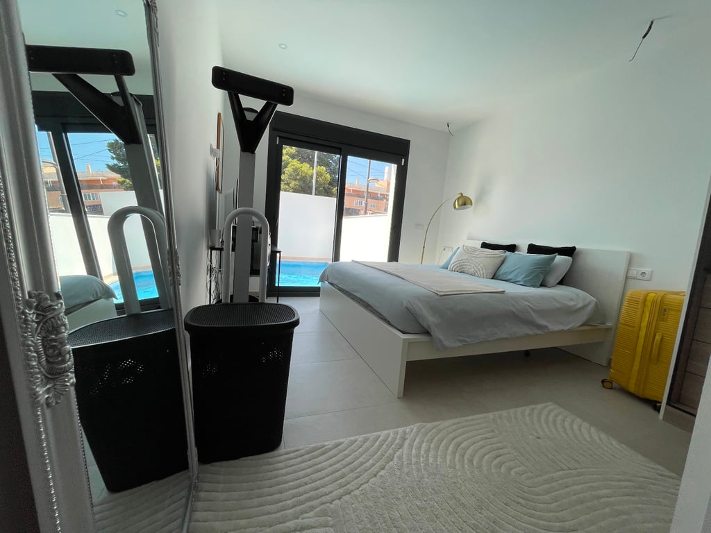 Moderne, bijna nieuwe villa in Formentera del Segura, een charmant dorp in het zuiden van de Costa Blanca, bekend om zijn rustige sfeer, nabijheid van de stranden van Guardamar en goede toegang tot voorzieningen en recreatiegebieden. Het huis beschikt over een privézwembad en parkeergelegenheid op het perceel met een elektrische garagepoort, drie slaapkamers, twee badkamers en een gastentoilet, ingebouwde kasten voor veel gemak en een lichte woon-eetkamer, perfect om van tijd met familie of vrienden te genieten. Het moderne ontwerp en de ruime indeling maken deze woning ideaal voor zowel permanent wonen als