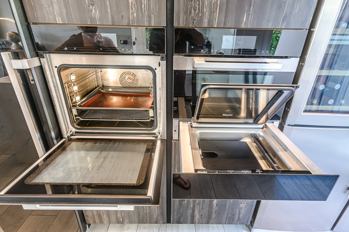 De keuken is een echt hoogtepunt: uitgerust met hoogwaardige Miele-apparatuur en afgewerkt volgens de hoogste kwaliteitsnormen.