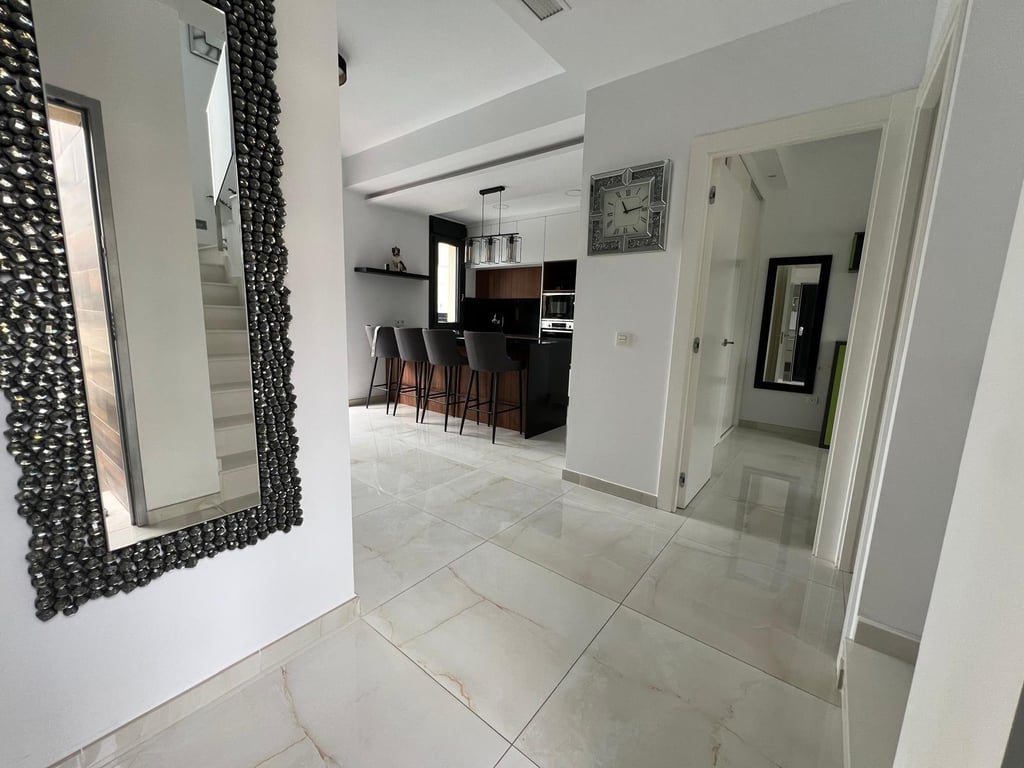 🏡 MODERN CHALET IN LOMAS DE CABO ROIG – A GEM ON THE COAST 🌴 We present an exclusive property located in one of the most sought-after residential areas on the Orihuela Costa: Lomas de Cabo Roig. This development is distinguished by its high level of maintenance, well-maintained surroundings, and exclusive residential atmosphere. If you're looking for a home that combines style, comfort, and sustainability, this villa is exactly what you need. 📐 201 m² Plot | 🏗️ 193 m² Built | 🧱 111 m² Living Area 🧑💼 Modern and Functional Architecture From first glance, this villa stands out for its contemporary design, clean lines, and quality materials. Each space has been designed to offer light, spaciousness, and comfort. 🚗 Private parking in front of the house Forget about looking for parking: you'll have your own space right in front of the house, with direct access. 🏊♀️ Private pool and garden Enjoy the Mediterranean climate year-round in your own pool, surrounded by a garden area ideal for sunbathing, barbecues, or simply relaxing. 🍽️ Open-plan kitchen with spacious living room A modern, open space that connects the kitchen with the living-dining room, perfect for gatherings with family or friends. 🧺 Separate laundry room, ideal for keeping the house tidy. 🛏️ Smart layout over 3 floors: ➡️ First floor: 1 versatile bedroom (ideal for guests or an office) 1 full bathroom ➡️ Second floor: 2 master bedrooms with en-suite bathrooms, both with direct access to a private terrace where you can relax with open views. ➡️ Third floor: Private solarium with solar panel installation already installed (only the batteries are missing). An ideal space to create a chill-out area, install an outdoor kitchen, or simply enjoy the views and the sun. 💡 Efficiency and sustainability: This home is not only modern in design but also energy-conscious, prepared to incorporate solar energy and reduce costs in the long term. 📍 Prime location: Minutes from the beaches of Cabo Roig, shopping centers like Zenia Boulevard, golf courses, supermarkets, restaurants, and all the services necessary for a comfortable and quality life. 🔑 A property designed for those who value design, comfort, and a sustainable future. Ready to enjoy from day one. 📲 Contact me for more details, photos, or to arrange a viewing. This villa will not leave you indifferent! 🌟