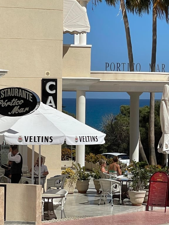 It features a large outdoor terrace with unobstructed views of the promenade, very inviting during good weather.