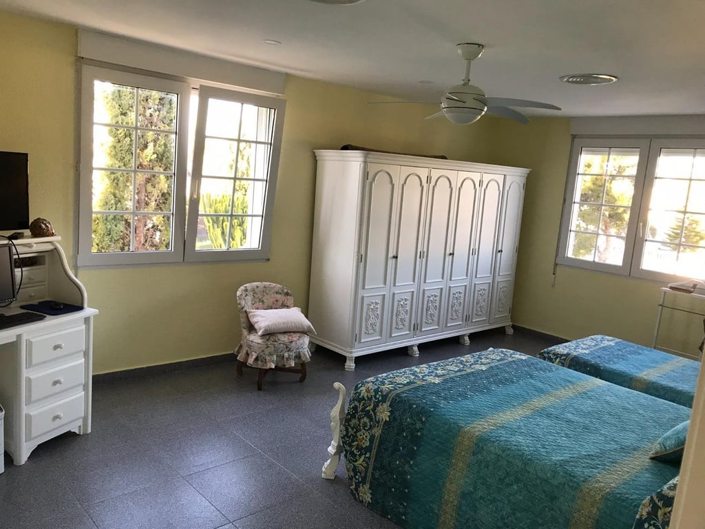 Happy to present this luxury villa located in a prestigious area of Cabo Roig, in Orihuela Costa and just 150 meters from the main beaches in the area. Distributed over 2 floors, the property consists of 7 very spacious bedrooms, 4 bathrooms, a fully furnished and equipped independent kitchen-dining room and a large living room. Its beautiful exteriors offer us different outdoor areas, a covered terrace and a large swimming pool surrounded by natural grass. Cabo Roig is one of the most exclusive and popular areas of the Costa Blanca, located in Orihuela Costa, south of Alicante. It is known for its stunning fine sandy beaches, crystal clear waters and its characteristic rocky cape that gives it its name. The main beaches are Cala Capitán and Playa de Cabo Roig, both with blue flag and excellent services.