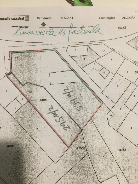 Large urban plot located in the centre of the town of Alguena - ideal for building an apartment block, commercial building like a supermarket, etc. This is a fantastic opportunity for someone looking for a part in the centre of town and possibilities for this plot are endless. With road access on two sides and also facing a village square, this plot has lots of possibilities. Being located in the centre of town, all the mains facilities such as electric, water, mains sewerage, Internet and telephone are available to the plot. We have keys for anyone wishing to view.We are specialists in the Costa Blanca and Costa Calida specialising in the Alicante and Murcia Inland regions with a particular emphasis on Elda, Pinoso, Aspe, Elche and surrounding areas. We are an established, well known and trusted company that has built a solid reputation amongst buyers and sellers since we began trading in 2004. We offer a complete service with no hidden charges or surprises, starting with sourcing the property, right through to completion, and an unrivalled after sales service which includes property management, building services, and general help and advice to make your new house a home. With a portfolio of well over 1400 properties for sale, we are confident that we can help, so just let us know your preferred property, budget and location, and we will do the rest.