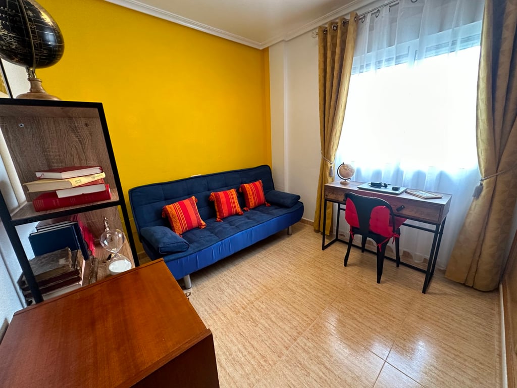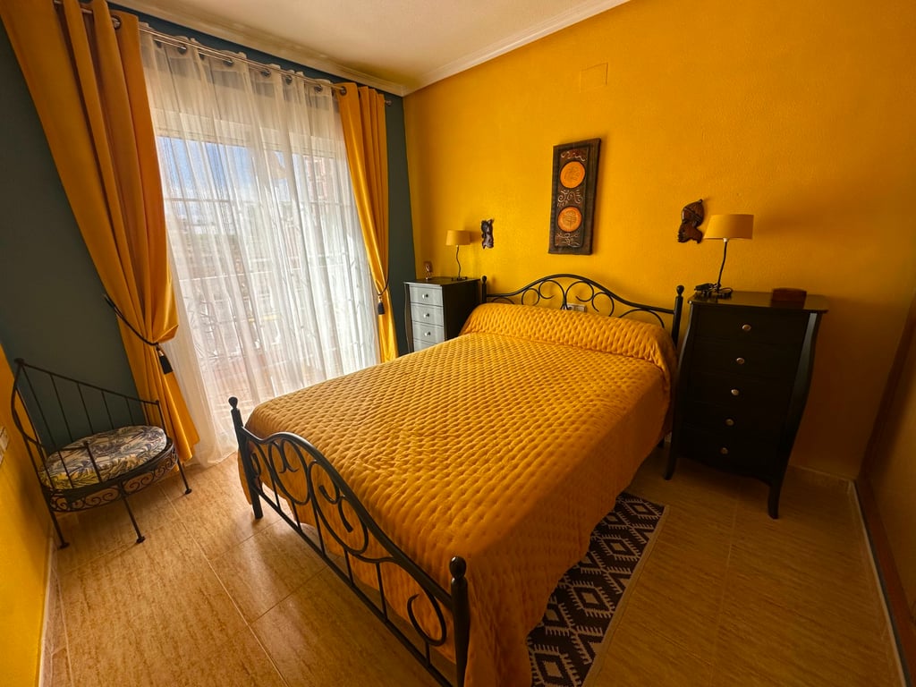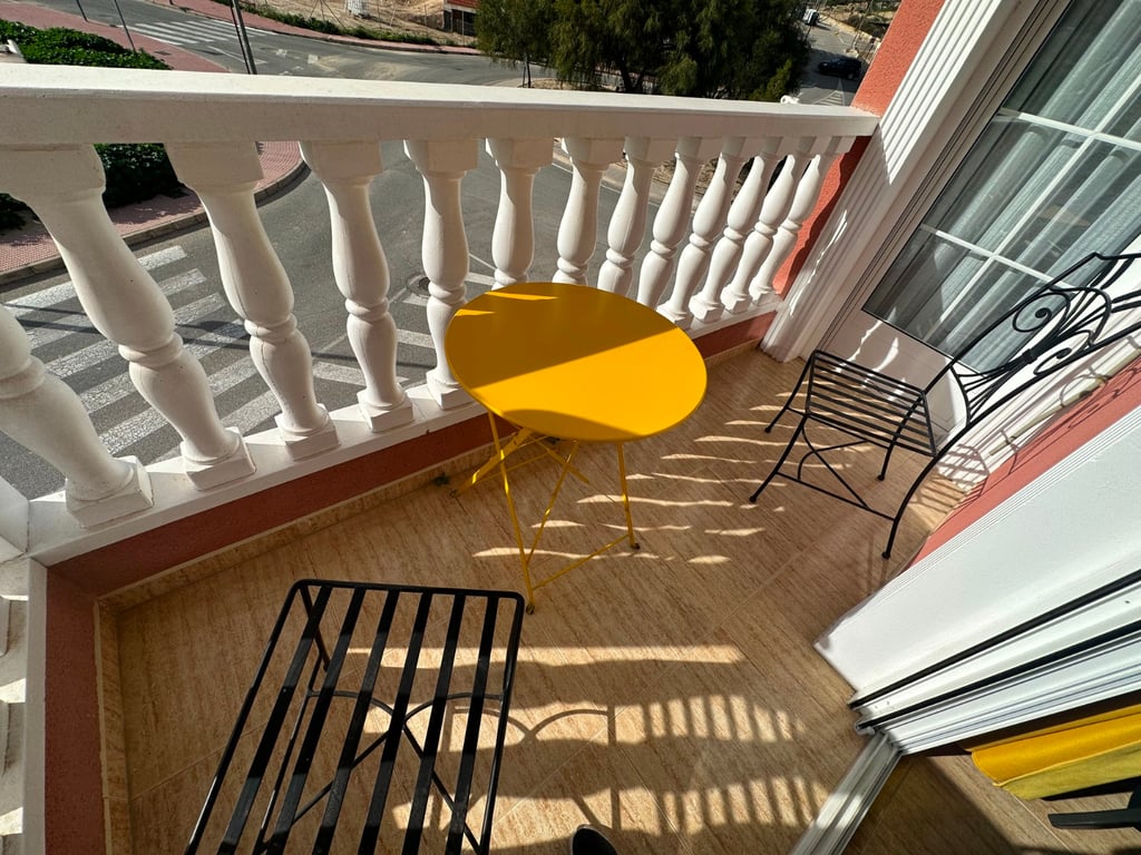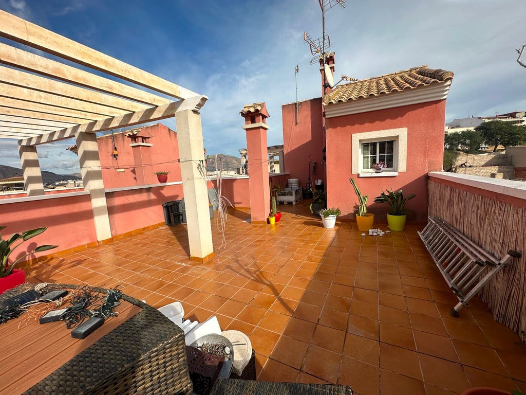 New listing ! This three-storey townhouse is located in Bigastro, Alicante, and enjoys a desirable southwest orientation that fills the home with natural light throughout the day. The property is thoughtfully laid out to combine comfortable family living with generous outdoor spaces and open views. On the ground floor, the entrance leads into a bright living area that flows naturally into the kitchen, creating a practical and welcoming main living space. This level also includes a bathroom and direct access to both outdoor areas: a front terrace that catches the afternoon sun, and a small, more private terrace at the rear, ideal for quiet moments or outdoor dining. A private garage on this floor adds convenience and secure parking. The second floor is dedicated to rest and privacy, offering three spacious bedrooms, all with ample wardrobe space. The main bedroom benefits from an ensuite bathroom, while two of the bedrooms share access to a balcony, providing an inviting spot for fresh air and natural light. Stairs from this level lead up to the private solarium, a standout feature of the home. From here, open mountain views create a peaceful setting, perfect for sunbathing, relaxing, or entertaining while enjoying the Mediterranean climate. Overall, this townhouse offers well-proportioned interiors, excellent outdoor areas, and a bright southwest orientation in a pleasant residential area of Bigastro.
