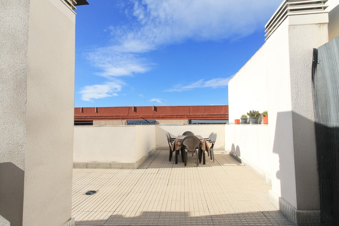 Exclusive penthouse in Alicante with solarium, terrace and panoramic views This exclusive penthouse in Alicante perfectly combines urban life and tranquility, offering a home full of style, light and exceptional outdoor spaces. Located on Calle Guardamar, just minutes from Alicante city center and Postiguet Beach, it allows you to enjoy the heart of the city while maintaining the calm of its large terrace and private solarium. With 84 m² of living space, three bedrooms and two bathrooms, the property stands out for its south/southwest orientation, ensuring natural light throughout the day and creating warm, welcoming interiors. The main bathroom was renovated in 2024, and appliances are new, making the penthouse ready to move in. The outdoor spaces are one of its highlights: the lower terrace of 70 m² is perfect for breakfast in the sun, evening dinners, or relaxing afternoons. The 60 m² solarium offers a private oasis with lounge furniture, sunbeds, parasols, plants, and even an outdoor kitchen or barbecue area—perfect for enjoying the sun and the views of Santa Bárbara Castle. The building has an elevator, a 4 m² storage room on the rooftop, and an optional underground parking for €14,000. Location & surroundings 20-minutes walk to Postiguet Beach 15-minutes walk to Alicante city center, with shops, restaurants, and entertainment 10-minutes walk to Marq Castillo tram station. Key features Exclusive penthouse in Alicante with 3 bedrooms and 2 bathrooms 84 m² living area Lower terrace 70 m² | Solarium 60 m² Views of Santa Bárbara Castle South/southwest orientation with all-day natural light Main bathroom renovated in 2024 and new appliances Elevator, optional garage, and storage room Close to beach, city center, and tram Perfect outdoor spaces for relaxation and outdoor living