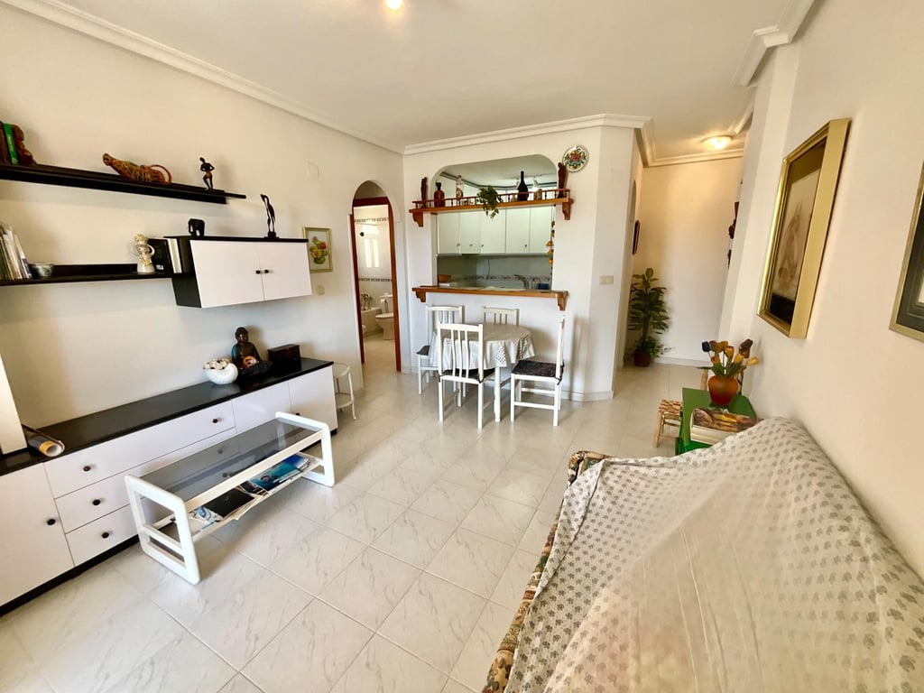 For sale: this fabulous PENTHOUSE in the Viñamar 6 residential complex, La Mata, with SOUTH-facing orientation and unobstructed views of the pool and communal areas of the residential complex. The property features a spacious and bright bedroom with a wardrobe, a full bathroom with a bathtub and exterior window, a cozy and functional living-dining room, and a fully equipped open-plan kitchen. The living room provides direct access to a private terrace overlooking the communal pool. The apartment is ready to move in, decorated in light tones that enhance the feeling of space and brightness. The building has an elevator and accessible entrance, and the residential complex stands out for its large gardens and fantastic community environment. Additionally, its location is unbeatable, just 200 meters from the sea and La Mata beach, surrounded by services, supermarkets, restaurants, and public transport. Ideal both for year-round living and for enjoying a seaside vacation on the Costa Blanca. Contact us and come see it!