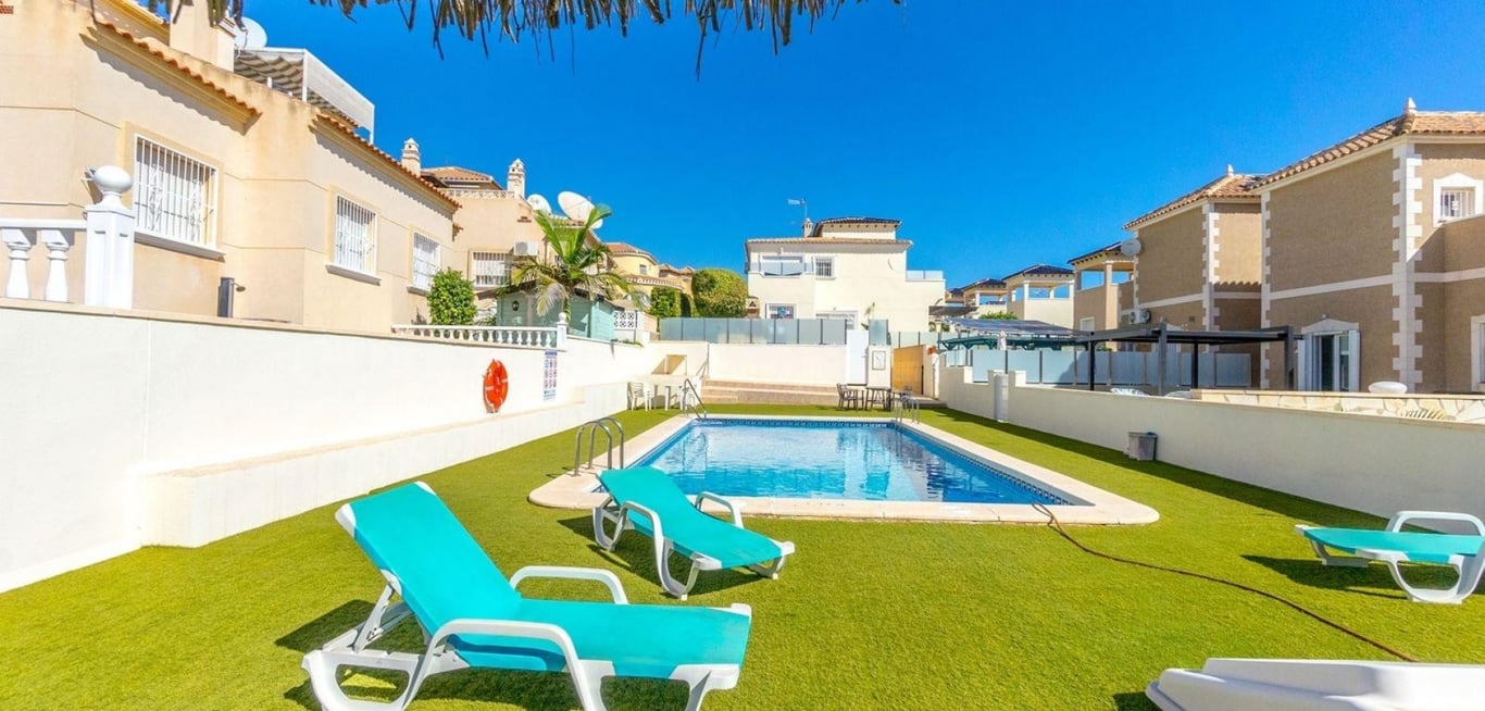 Wij presenteren met trots deze goed onderhouden, vrijstaande villa in de populaire woonwijk Blue Lagoon in Villamartin.