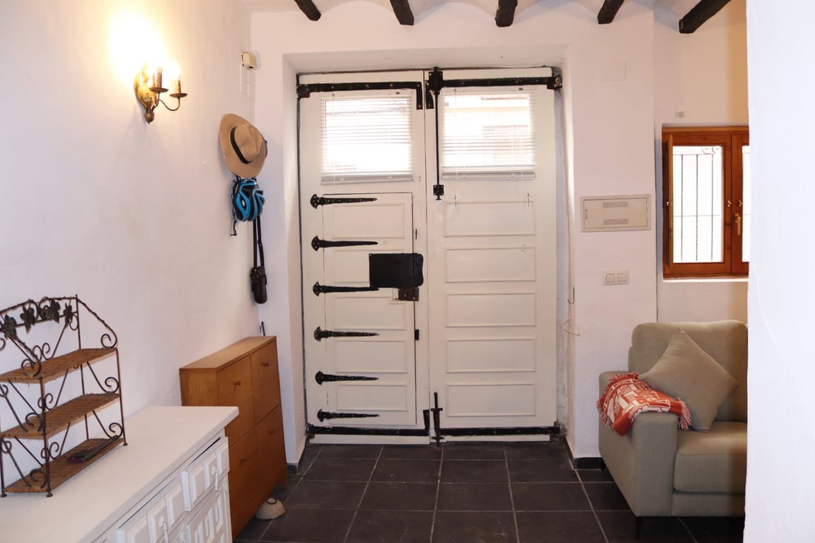 Charming 3 bedroom townhouse in Jalon ...Original castillian doors open into the cosy lounge and dining area with barrelled and beamed ceiling and recently installed log burner. A broad arch from the lounge leads into the fully fitted kitchen with wall and base units and a tiled backsplash to the sink, hob and oven.Stairs from the kitchen lead up to the first floor where the accommodation comprises: double bedroom 1 with beamed ceiling and original tiled floors; family shower room with corner shower, basin, WC and storage and double bedroom 2 with beamed ceiling.Stairs from the first floor landing take you up to the bright and spacious master bedroom with beamed ceiling, A/C, en-suite shower room and seating area with french doors opening onto the private terrace with village and mountain views.Back to the kitchen where a door leads out to the lovely paved courtyard with outside water, the gas casita and newly installed boiler. From the courtyard you can access the Almacen which would have been the original storage area with the accommodation here comprising a storage room, bathroom with bath and WC and above this a spacious room full of character with feature stone walls and full height windows with ample potential uses either for additional accommodation, a study or office, gym or workout space or as a studio for painting or any other hobby uses.This is a charming property with many traditional features just a few minutes walk into the centre of Jalon with all the local amenities you would expect to find in a traditional Spaish working town including bars and restaurants, supermarkets and independent shops, medical and dental surgeries, post office and pharmacy and of course the wonderful Bodegas with fabulous wines and other local produce.A real gem of a property not to be missed out on if you are looking for your new home in Jalon. The Property Team know that buying a property in Spain is a huge decision but with our local knowledge we can guide you through the process and answer any questions or concerns you may have. We are always contactable whenever you need us and if no properties on our own website meet fully with your requirements just let us know what you are looking for and we will search for the right property for you.