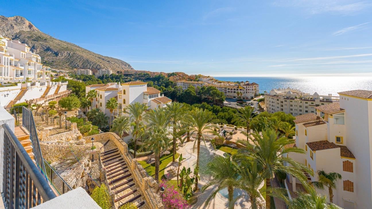 Dit prachtig gerenoveerde appartement bevindt zich in een uitstekend onderhouden resort met prachtig aangelegde tuinen en een gemeenschappelijk zwembad, direct gelegen naast het strand en de jachthaven Greenwich (Campomanes) in Altea. Een absolute eyecatcher is het uitzonderlijk ruime, zuidgerichte terras met adembenemend zeezicht. De ideale plek om het hele jaar door te genieten van het mediterrane buitenleven. Binnen biedt de woning een moderne open keuken, een lichte en comfortabele woonkamer, drie ruime slaapkamers en twee stijlvolle badkamers, waarvan één en suite. Het appartement is verder uitgerust met centrale airconditioning, zonwering, een privé jacuzzi en een ondergrondse parkeerplaats. Dankzij de uitstekende ligging liggen zowel het strand als de gezellige haven van Campomanes op loopafstand. Dit maakt het appartement perfect als luxe vakantiewoning, maar ook zeer geschikt voor permanente bewoning.