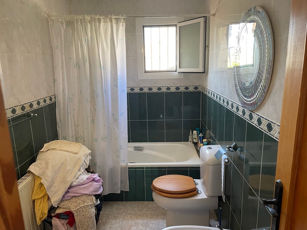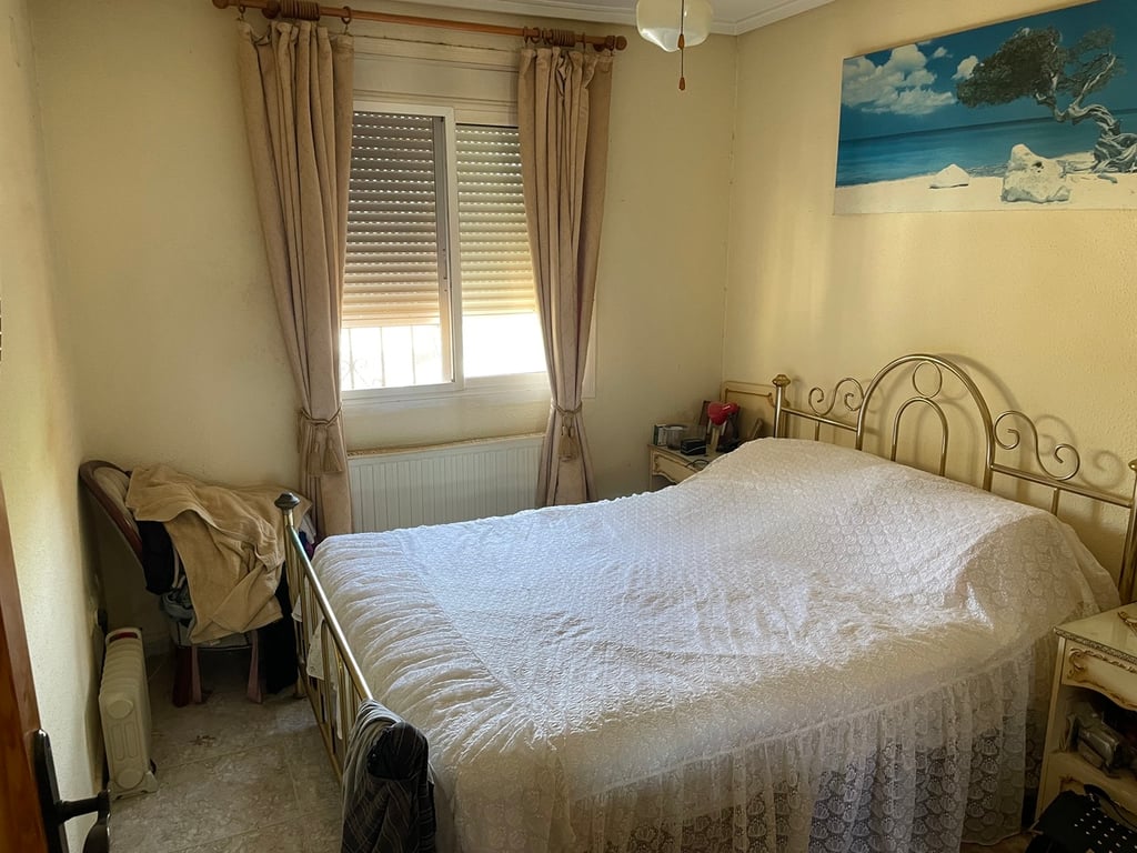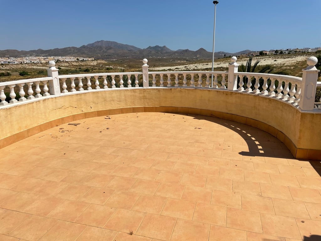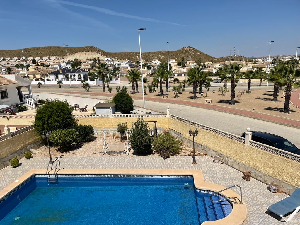 A lovely, detached corner villa with 3 bedrooms, 3 bathrooms and private swimming pool on the final phase of Camposol in Mazarron, Murcia. The property has a wood burning fireplace, central heating, alarm system and dual air-conditioning in a few rooms plus an under-build. Being sold fully furnished including all white goods.The property is entered via a few stairs leading into the front glazed sun terrace with ceiling fan. The spacious lounge and dining area benefits from oil fired central heating, hot & cold air-conditioning, ceiling fans and a wood burning fireplace. The well equipped kitchen has light pine wood upper and lower units, oven, hob and extractor fan and all other domestic electrical appliances including dishwasher. From the kitchen door you have access to the stairs to the top box bedroom and en-suite bathroom.Three double bedrooms, all with fitted wardrobes, central heating and ceiling fans. Two of the bedrooms are en-suite, fully tiled with shower units, bath and heating. The master en-suite bedroom is upstairs and accessed by external stairs. Patio doors lead out to the large solarium offering lovely views to the open countryside and mountains and has storage space. The property also benefits from no other properties opposite and has off-road, covered parking for up to 5 vehicles.Outside, the garden is mainly gravelled; there is a lovely 10 x 8 swimming pool with a fully tiled surround and a shaded area. The garden has many trees, plants and shrubs plus there is a 160 L water tank. The property has a constructed area of 120 sqm and sits on a generous plot of 625 sqm. All windows have security grills, locks and flyscreens. You can access the full height under-build from the side of the property and there’s further storage to the side of the villa. The property is southeast facing. Camposol is located 15 minutes from the blue flag beaches of Puerto de Mazarron and Bolnuevo. The new Corvera international airport is just 20 minutes away and Alicante 70 minutes. In addition to the 18 hole golf course within Camposol, there is the Jack Nicklaus course 10 minutes away in Alhama de Murcia and many more with a 30 km radius.Camposol has a selection of shops, bars, restaurants, banks, dentists, health clinic, medical centre, cultural centre, gymnasium and petrol station. With plenty of activities to enjoy including bingo, fitness classes and much more, now’s the time to purchase your dream home in the sun in this lovely Region.