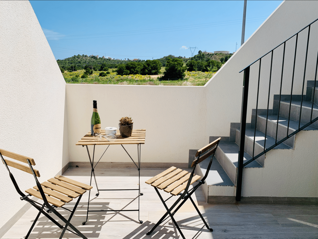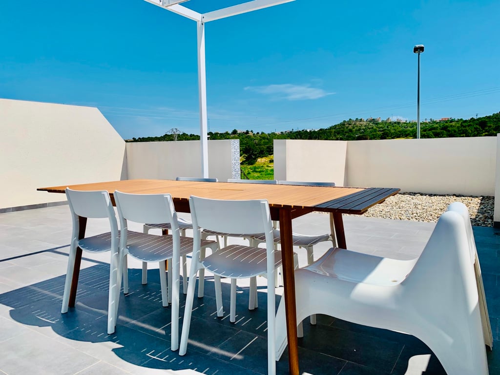 The location is perfect: in a quiet area, with magnificent views on the countryside with orange trees, the salt marshes and the sea, between the village of San Miguel de Salinas and the beach of Mil Palmeras.