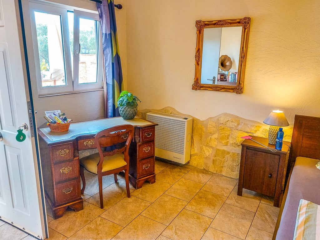 De accommodatie beschikt over een privézwembad, omringd door ligbedden en een zonneterras, ideaal om te ontspannen en van het prachtige weer te genieten. De finca wordt omringd door weelderige, goed onderhouden tuinen, met bloemen, olijfbomen en geurige citrusbomen, wat een extra gevoel van rust en schoonheid toevoegt.