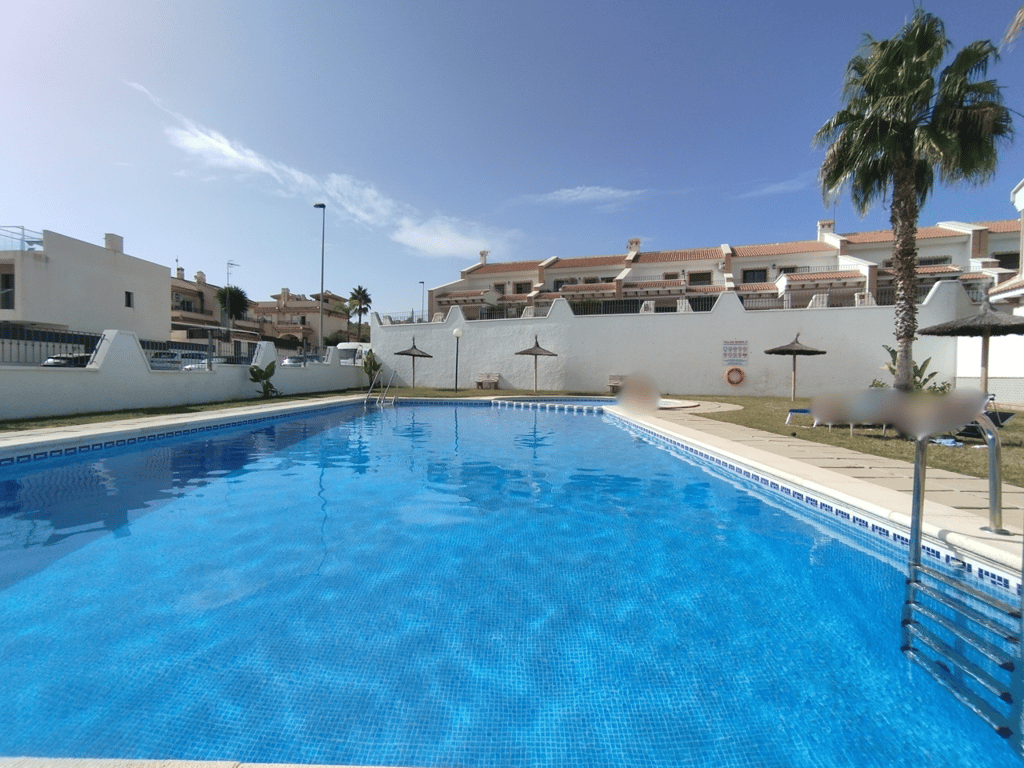 BEAUTIFUL refurbished townhouse in a lovely urbanization just outside San Miguel de salinas. As you enter the property you are welcomed with a large front garden terrace area with plenty of sun. As we enter the house there is a spacious living room and dining area then a great size modern kitchen. There is a downstair bathroom with shower completed , then a downstair bedroom which leads out to the back padio. As we go upstairs we are welcomed with a great size bedroom with ensuite and its balcony. Third bedroom and bathroom , this property offers so much space , tranquility and luxury finish. The property also has its own underground parking space and a huge storage room included in the price. There is a lovely communal pool to relax and just minutes drive away from the lovely golf courses such as las colinas , Villamartin.Dont miss out