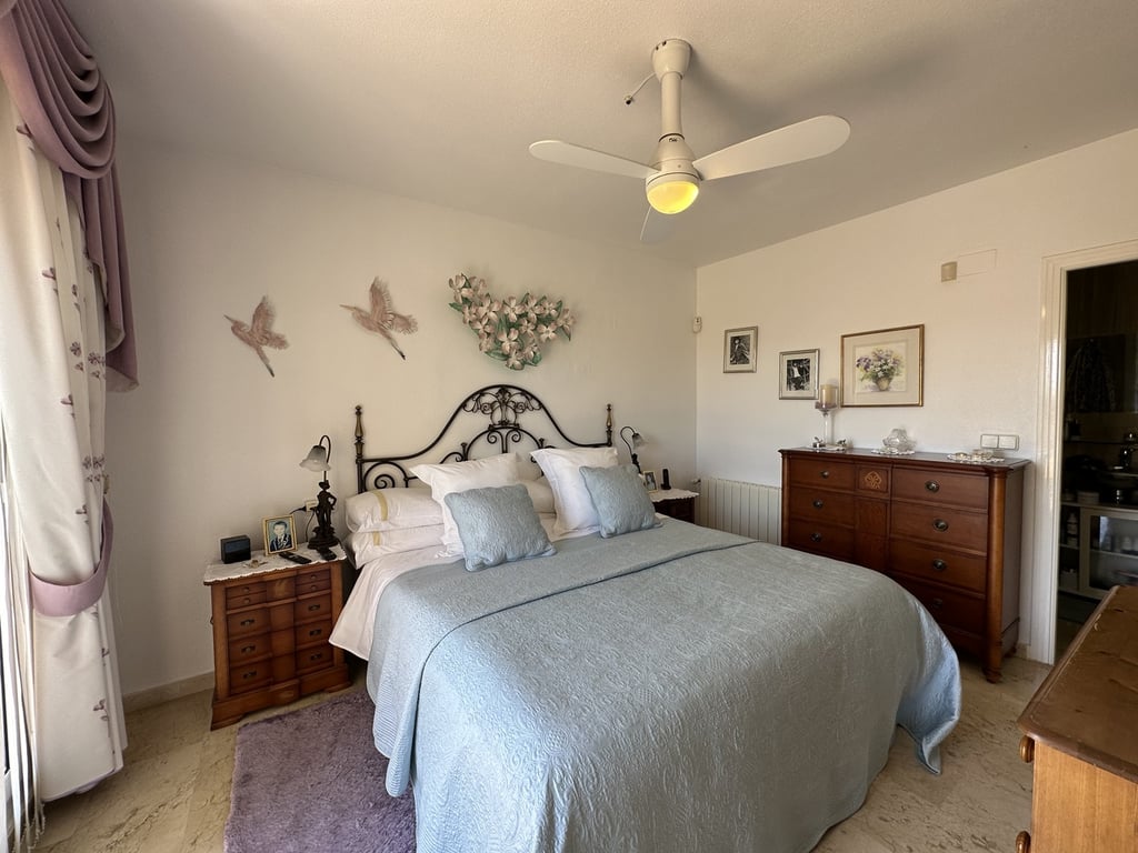 Immaculate villa for sale located with elevated, front-line views located at Las Ramblas golf resort. This impressive south facing property was designed so that every room boasts spectacular views across the golf course and pine forrest. On the main level of the property is a huge living room with seperate television and dining areas along with a guest toilet. There is an impressive fully equipped kitchen with vaulted ceiling and a staircase leading to an additional chill out area and a private office. From the living room there is access to a very sunny terrace, purpose built bbq and outdoor dining area with again more breathtaking views of the golf course. An internal staircase leads down to the master bedroom which had a private sun terrace, dressing room and double bathroom with a shower and bathtub. There are two additional guest bedrooms and a guest bathroom. The property also has a second lounge and living area with kitchen, bathroom and even a cocktail bar with direct access to the swimming pool and sunbathing deck. The property has been finished to a high quality and finished with many, many extras including private garage, air-conditioning, two fireplaces, mosquito nets, electric gates and alarm system.