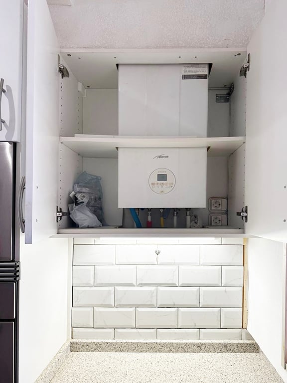 This Mediterranean style terraced Villa on 2 levels, offers south front garden with BBQ area, a stylish living room with fireplace and underfloor heating and privat terrace. American style kitchen with breakfast bar, Guest toilet with shower and separate storage.