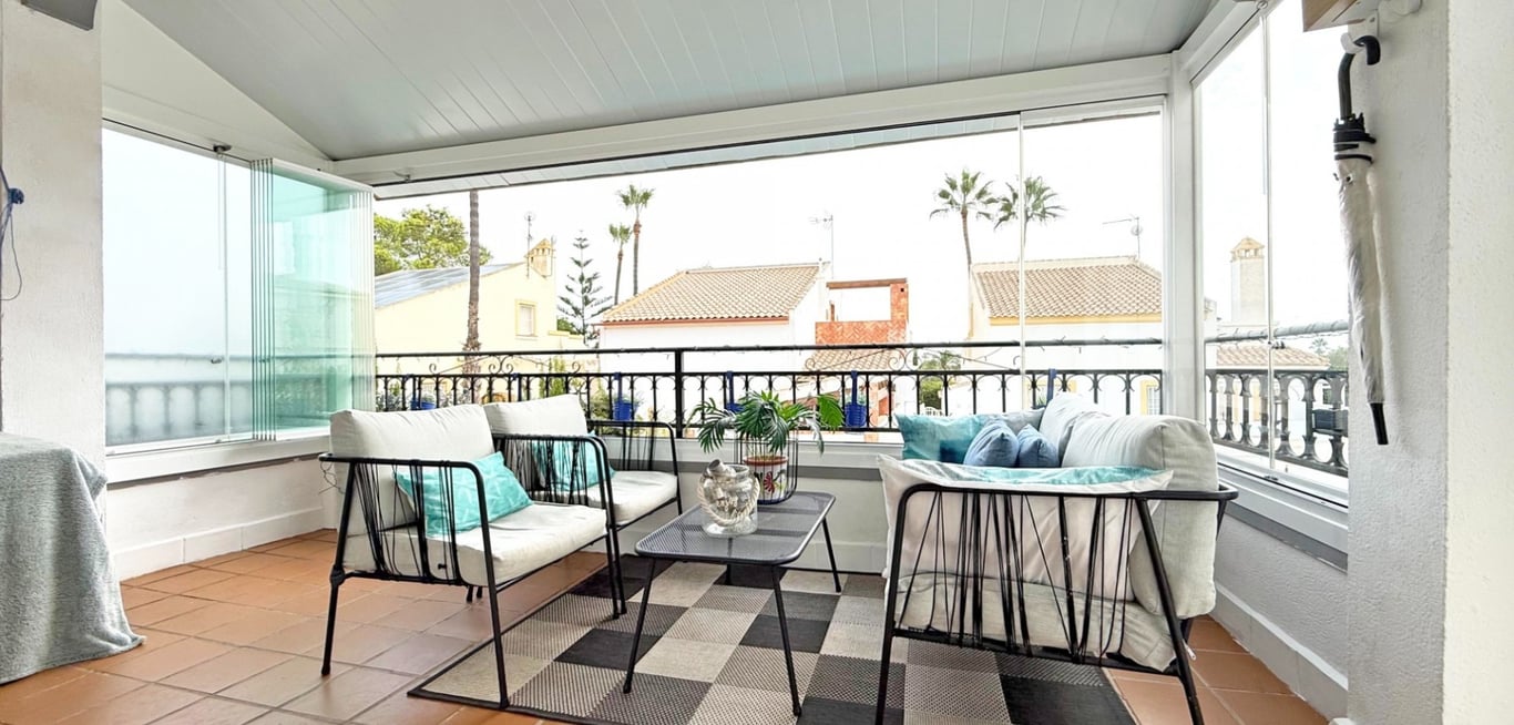 Deze goed onderhouden villa is smaakvol gerenoveerd tot een woning met 2/3 slaapkamers die comfort en stijl combineert. De woning beschikt over een privézwembad, drie badkamers (waarvan twee en-suite), een ruime woonkeuken en een grote woonkamer met toegang tot een balkon met uitzicht op het zwembad. Het balkon kan worden afgesloten met glazen schuifwanden, zodat het het hele jaar door te gebruiken is. De logeerkamer heeft een eigen patio, eveneens afgesloten met glazen wanden, terwijl de hoofdslaapkamer beschikt over een groot solarium met prachtig zeezicht. Verder is er airconditioning in het hele huis, de mogelijkheid tot centrale verwarming, twee ruime bergingen en een uitstekende ligging in een rustige en privéomgeving in Villamartin, op loopafstand van het beroemde Villamartin-plein en de golfbaan.