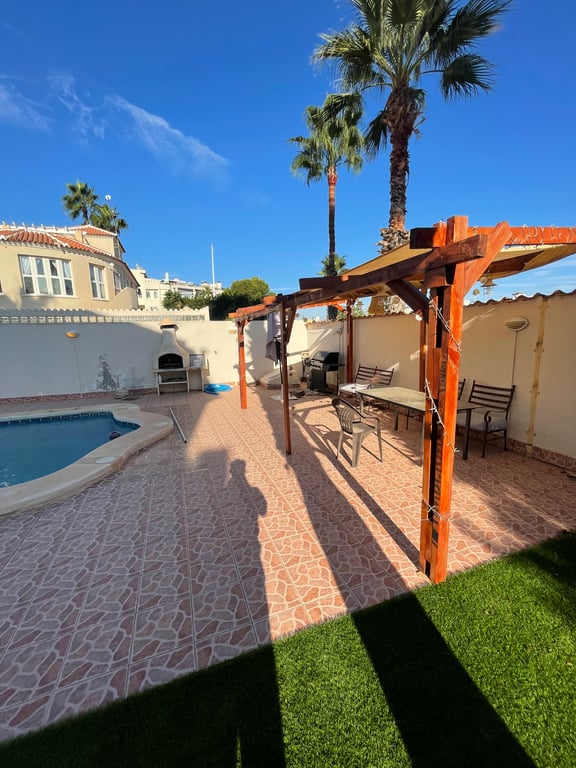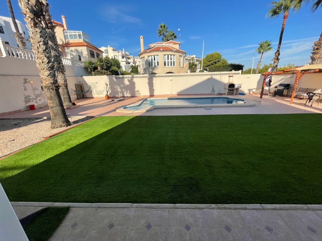 A very large detached villa situated in the popular location of La Zenia, close to all local facilities and amenities and within a short stroll of La Zenia beach and Boulevard.The property is approached by electric gates leading to the driveway. There are 5 bedrooms and 3 bathrooms. Downstairs the area is open plan which is very large and has large patio doors opening to the terrace and private pool. This is a really spectacular property offering huge accommodation situated on a plot of approximately 700M2.
